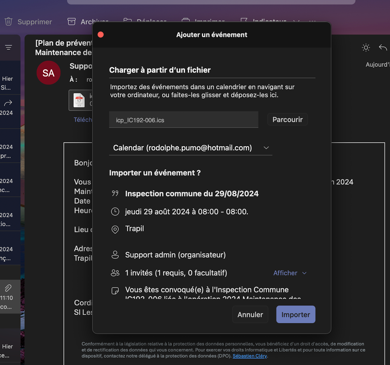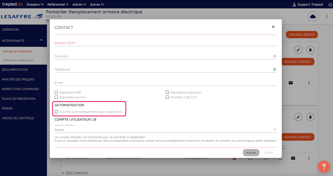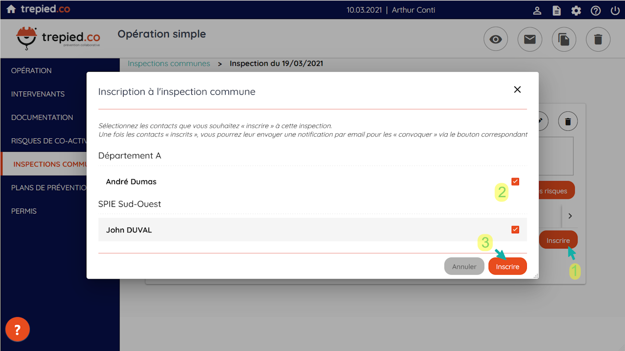 Enfin, le jour de l'inspection, la colonne "Présent" (à gauche de la liste des contacts) vous permet de cocher les personnes effectivement présentes.