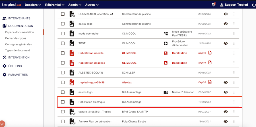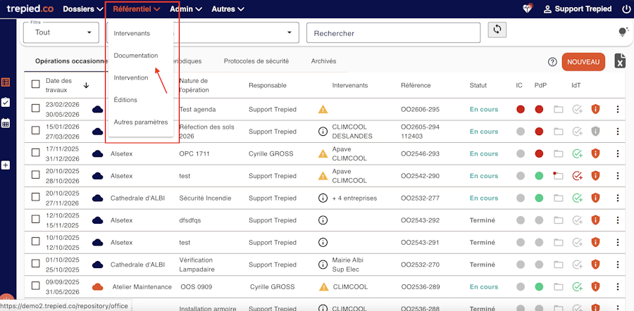 Une fois connecté à l'interface Trepied.co, accédez à l'onglet Référentiel > Documentation.