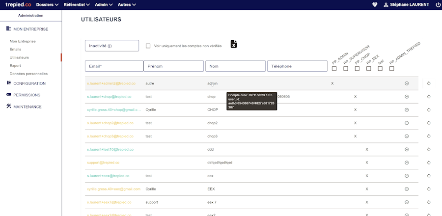 Rôles | Identifier un compte PP_EEX_EU depuis la liste des utilisateurs